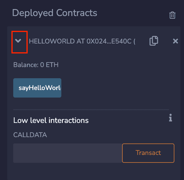 Now, we can expand it by selecting it from the "Deployed Contracts" tab and test it out.